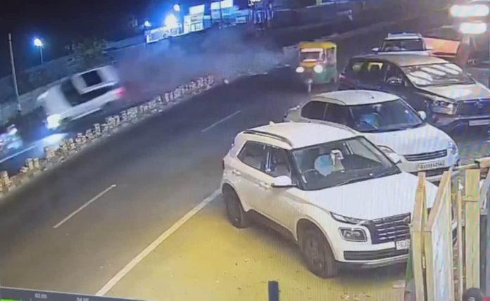 अहमदाबादमधील नरोडा-देहगाम रोडवर काल रात्री ही घटना घडली. सीसीटीव्ही कॅमेऱ्यातील फुटेजमध्ये एक ऑटो रिक्षा आणि ह्युंदाई क्रेटा एसयूव्ही मागे दिसत आहे. एसयूव्ही ड्रायव्हरने भरधाव वेगाने तीनचाकीला ओव्हरटेक केले, पण नियंत्रण सुटले आणि दुभाजक उडी मारून पुढच्या लेनमध्ये गेला. SUV किमान पाच सेकंद हवेत होती आणि एका बाजूला झुकलेली होती, ती किती वेगात आहे हे सूचित करते. उतरत असताना विरुद्ध बाजूने येणाऱ्या होंडा ॲक्टिव्हा स्कूटरला धडकली. या अपघातात स्कूटरवर असलेले अमित राठोड (26) आणि विशाल राठोड (27) यांचा जागीच मृत्यू झाला.