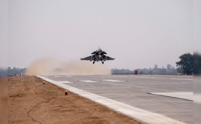 पोलिस अधीक्षक राजेश द्विवेदी यांनी शुक्रवारी सांगितले की, जलालाबाद परिसरातील गंगा एक्सप्रेसवेच्या पिरू गावाजवळ एअरस्पट्टी बांधली गेली आहे, जी आज एम 32, जग्वार, हर्क्युलस, सुखोई, मिंग 29 आणि राफेल सारख्या युद्ध विमानांनी केली आहे.